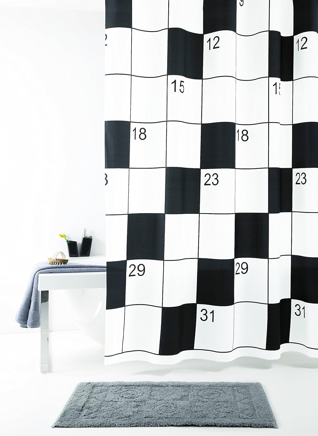 Tenda Da Doccia Tessuto 180x200 Cm Con Anelli Cruciverba Tenda Per La Vasca Antimuffa Lavabile In Bianco E Nero Con Un Motivo Di Parole Crociate Accessori Per Il Bagno Casa E Cucina