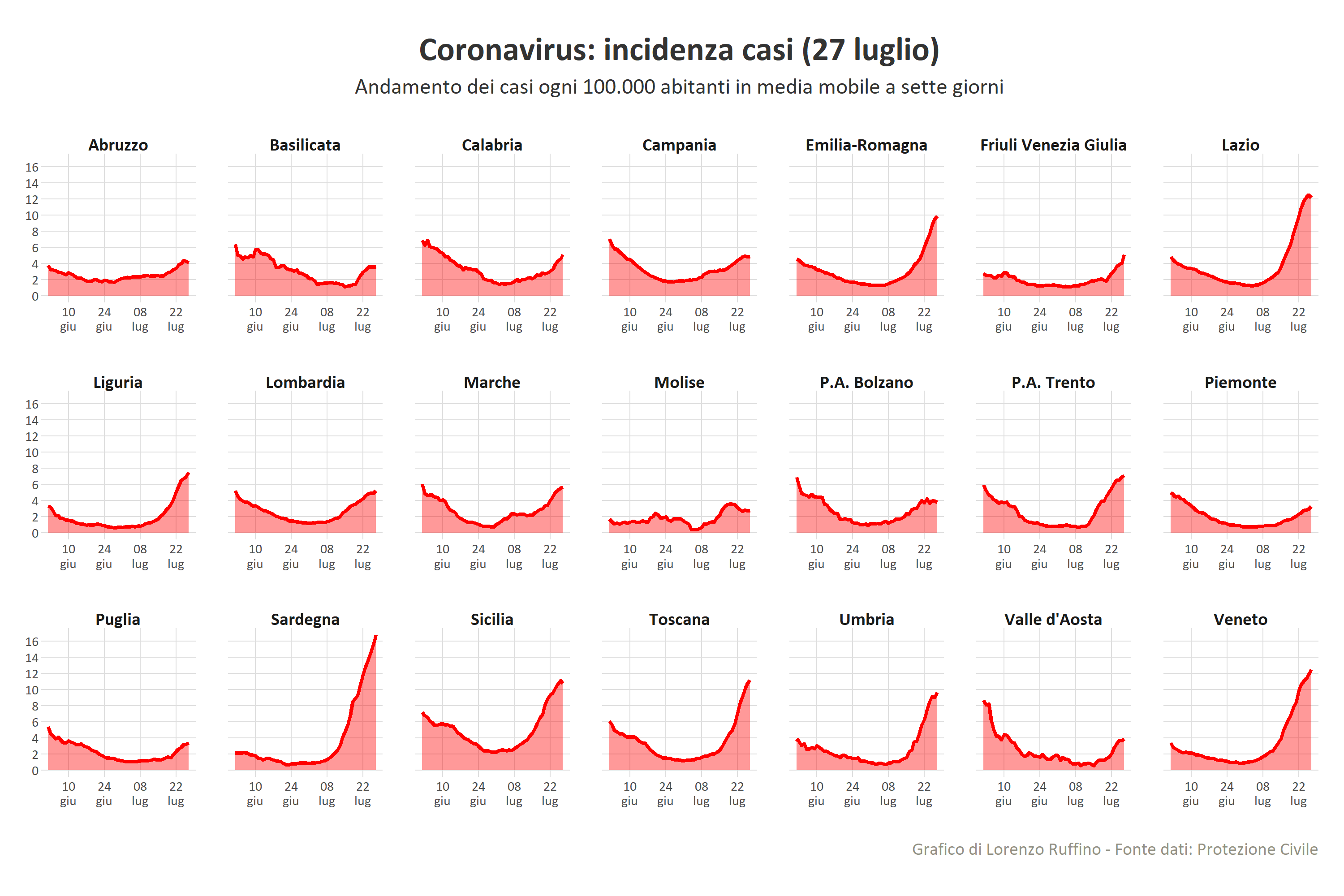 Stesso discorso per il capoluogo con lultimo rilevamento a 114 in netto calo rispetto al resto di luglio. Secondo il matematico del Cnr Giovanni Sebastiani le informazioni rilevate preludono a un. Dai dati diffusi dalla Protezione Civile oggi 29 luglio il quadro epidemiologico in Italia vede un aumento dei nuovi positivi da Covid-19 sono 6171 contro i 5696 di ieri e un incremento delle ospedalizzazioni 11 in piĂą di ieri.